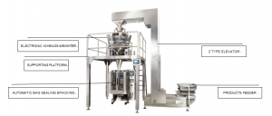 - Bolsa de producto, sellado, embalaje, impresión de fecha, todo terminado en una sola vez