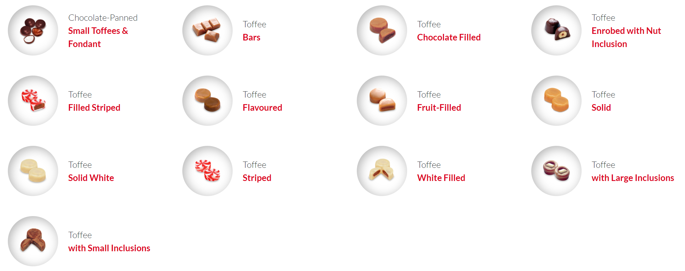 A produção de caramelo e caramelo de alta qualidade pode ser feita por uma linha de depósito controlada por PLC servo totalmente automática em uma variedade de formas e cores, incluindo recheio central de valor agregado, como chocolate, geléia etc.